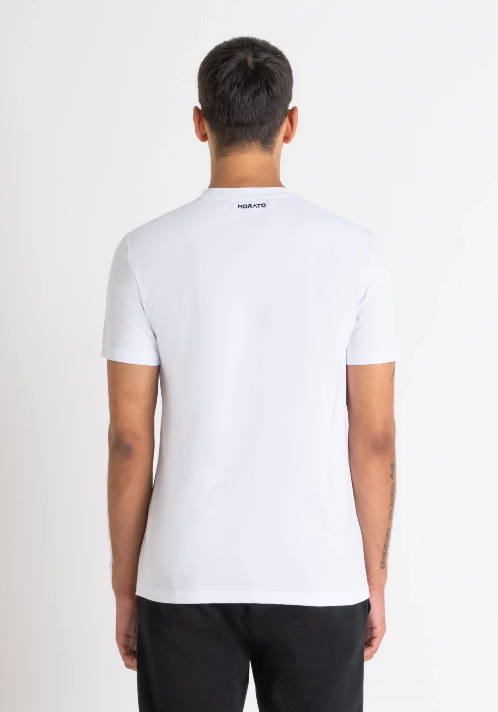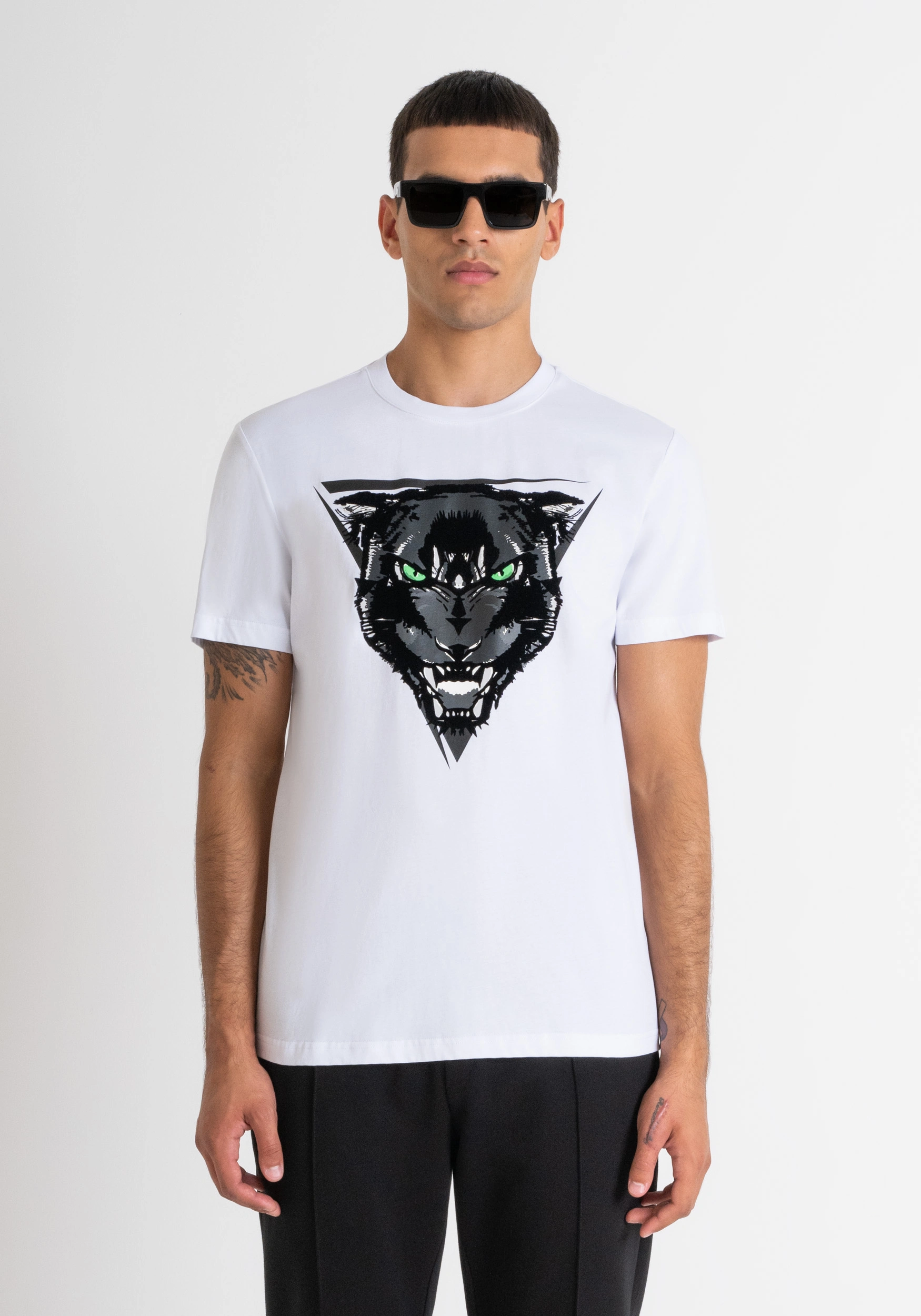 Camiseta regular fit de jersey de algodón blanco con estampado de pantera