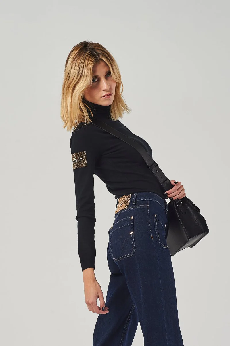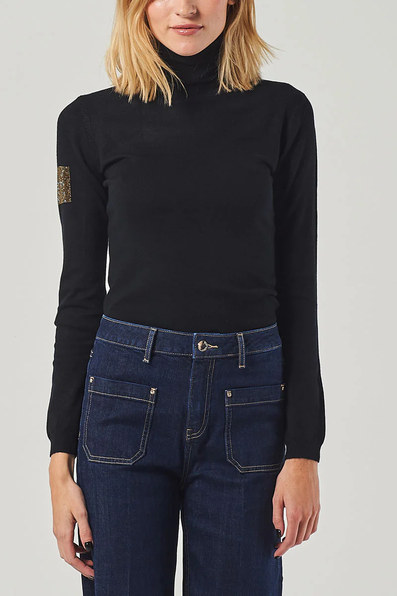 Jersey de cuello alto con parche lateral de strass – MET