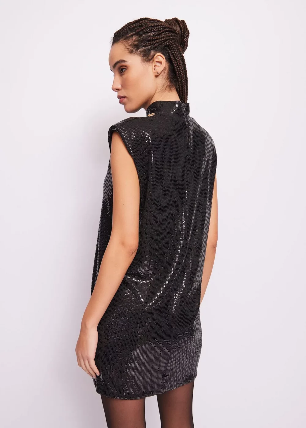 • Vestido corto de punto elástico con efecto de lentejuelas