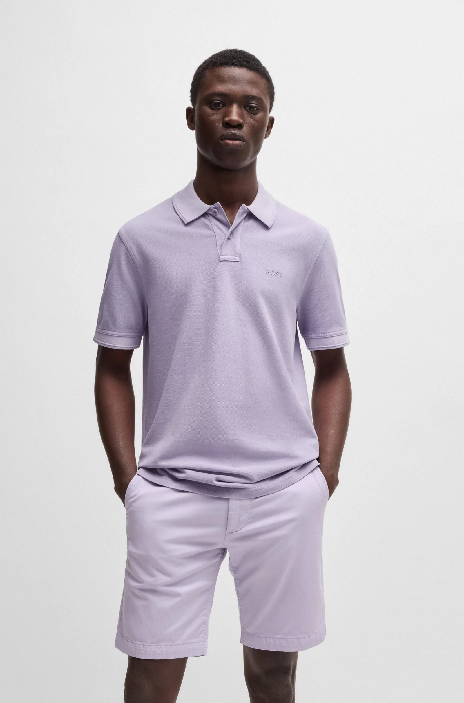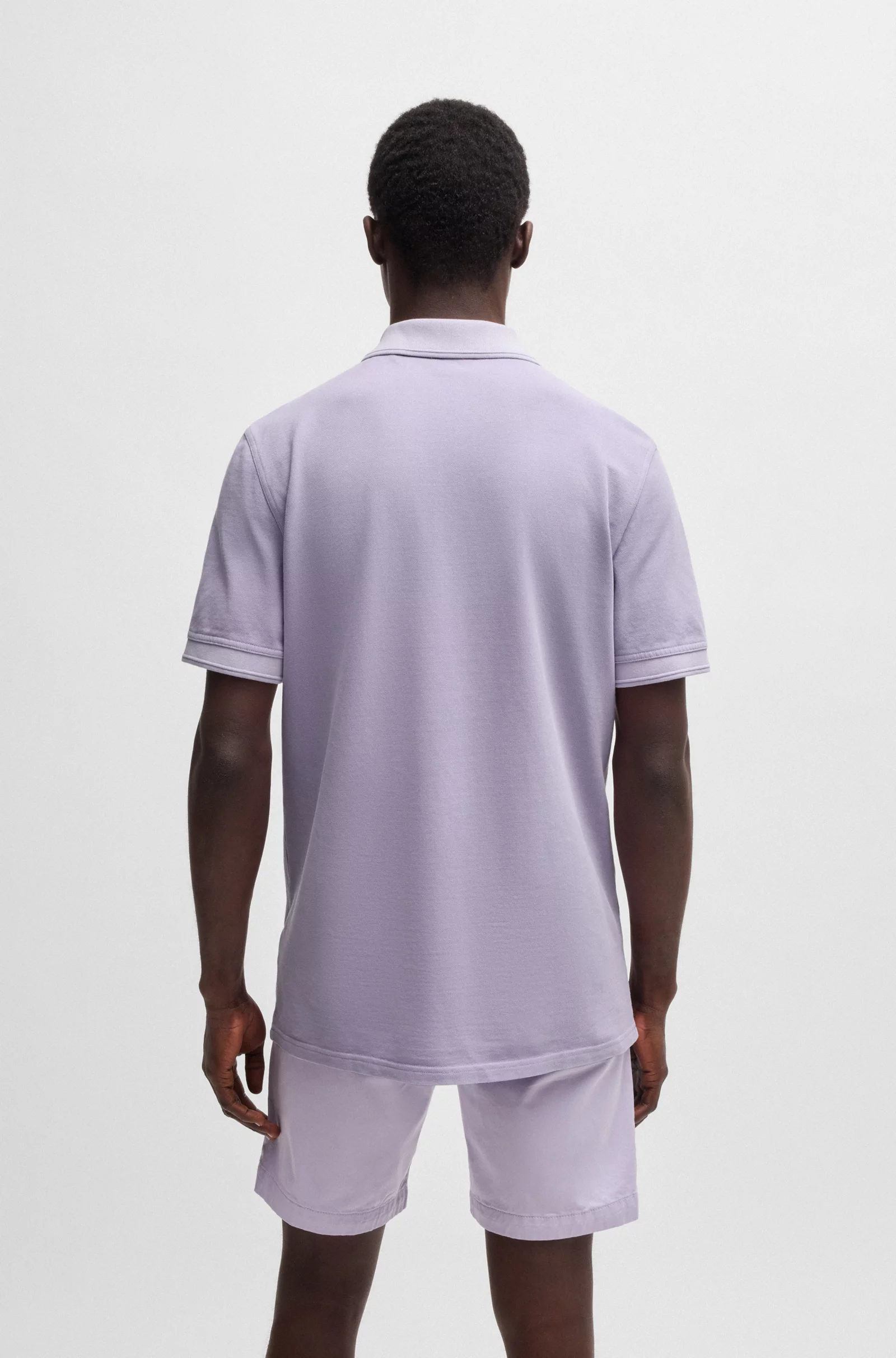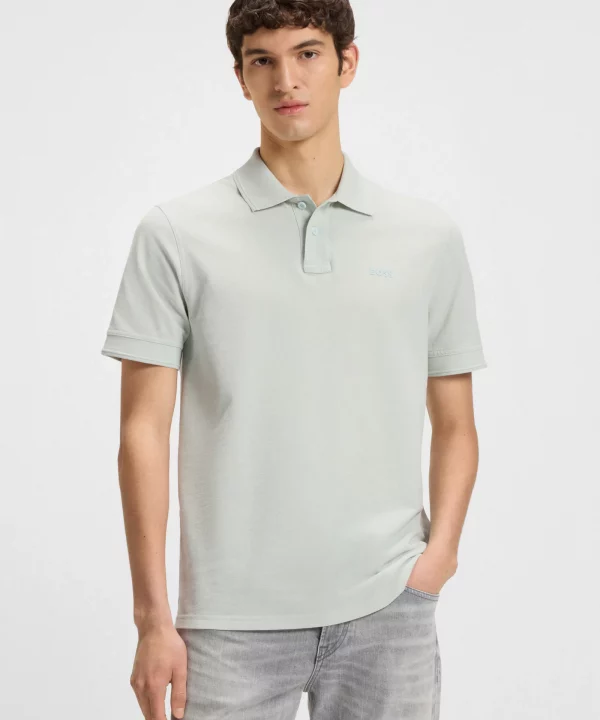 Un polo BOSS regular fit en piqué de algodón lavado. Incluye un logo estampado a capas y rayas con textura en el cuello y los puños.