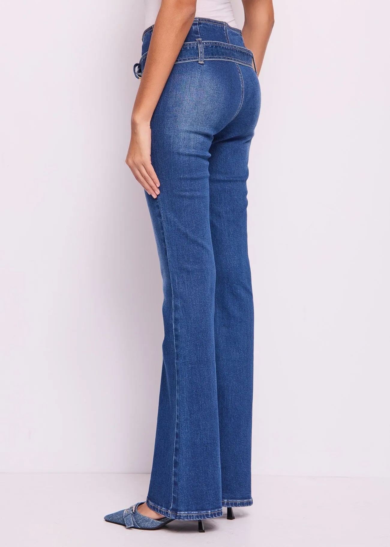 Vaqueros acampanados de algodón con cinturón – DENNY ROSE