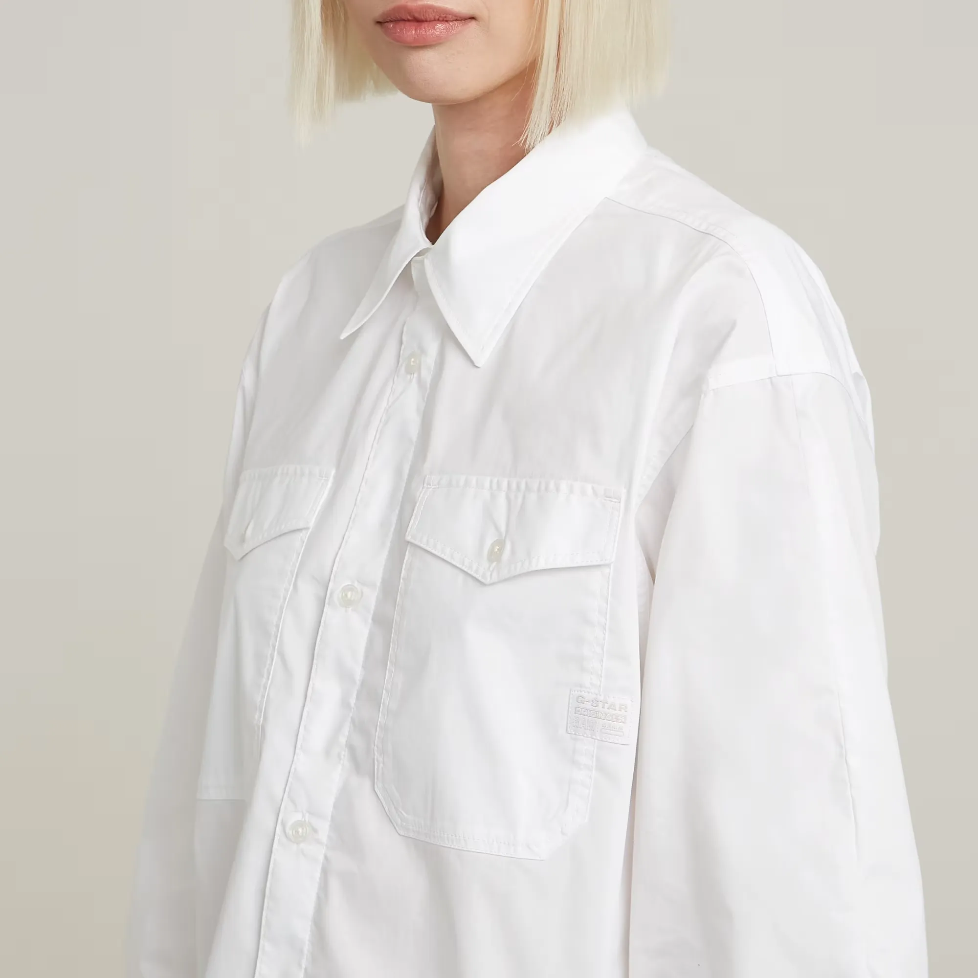 La camisa Boxy tiene un diseño de largo acortado y un cierre de botones. Al tirar de los cordones, se puede crear un efecto recortado en uno o ambos lados. Esta camisa lleva bolsillos con solapa en el pecho y un panel en el hombro por detrás.