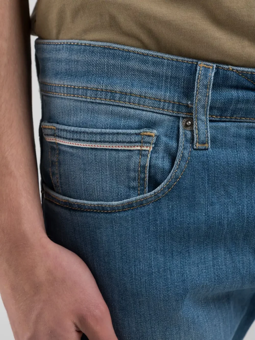 Vaqueros rectos con cintura de tiro regular y pernera recta desde la cadera hasta el bajo para un ajuste cómodo. Esta prenda de cinco bolsillos está confeccionada en denim índigo elástico de algodón de 325 g con lavado a la piedra medio y presenta un raspado hecho a mano que crea contraste en las zonas desgastadas. Los bolsillos traseros lucen nuestra icónica costura de ala de gaviota y uno de ellos luce el bordado de la R, mientras que uno de los bolsillos delanteros luce una pequeña inserción de la marca. Cierre de botones.