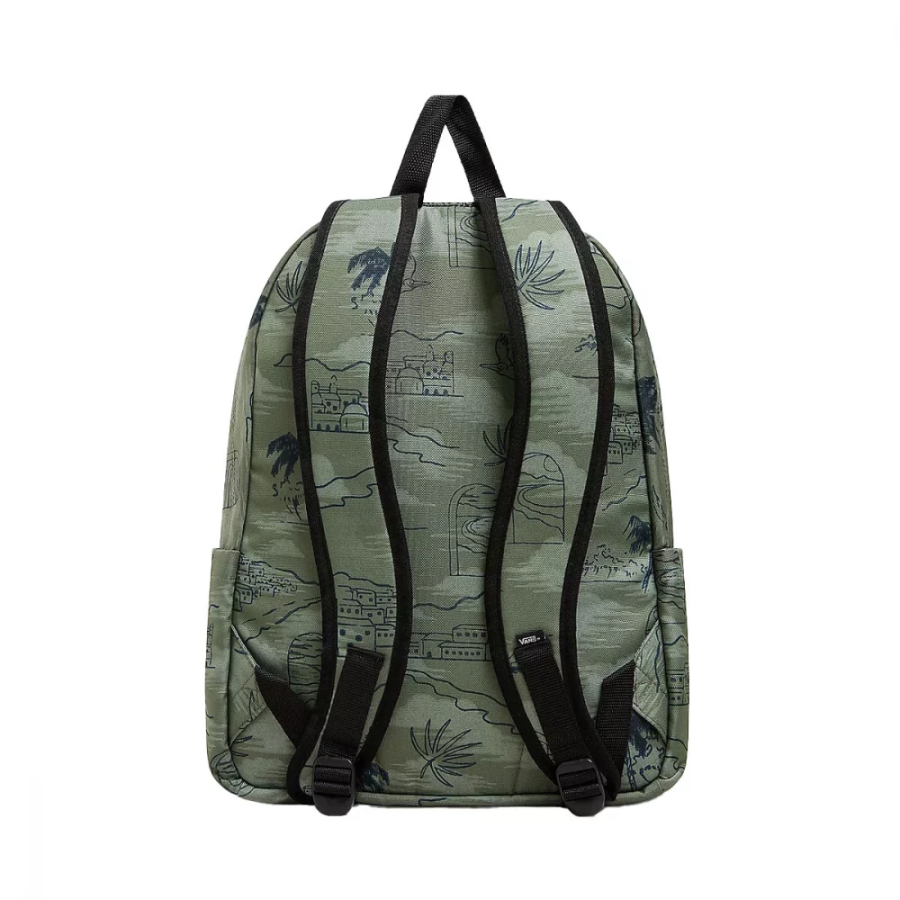 La mochila Old Skool es una de las favoritas por una buena razón. Esta mochila clásica cuenta con un diseño multiusos de dos bolsillos con organizador frontal, un bolsillo interior extraíble, una funda para portátil compatible con la mayoría de portátiles de 15″ y un bolsillo lateral para botella de agua. Su tono verde oscuro y detalles históricos, como la clásica etiqueta de Vans®, le aportan personalidad a este icónico diseño.