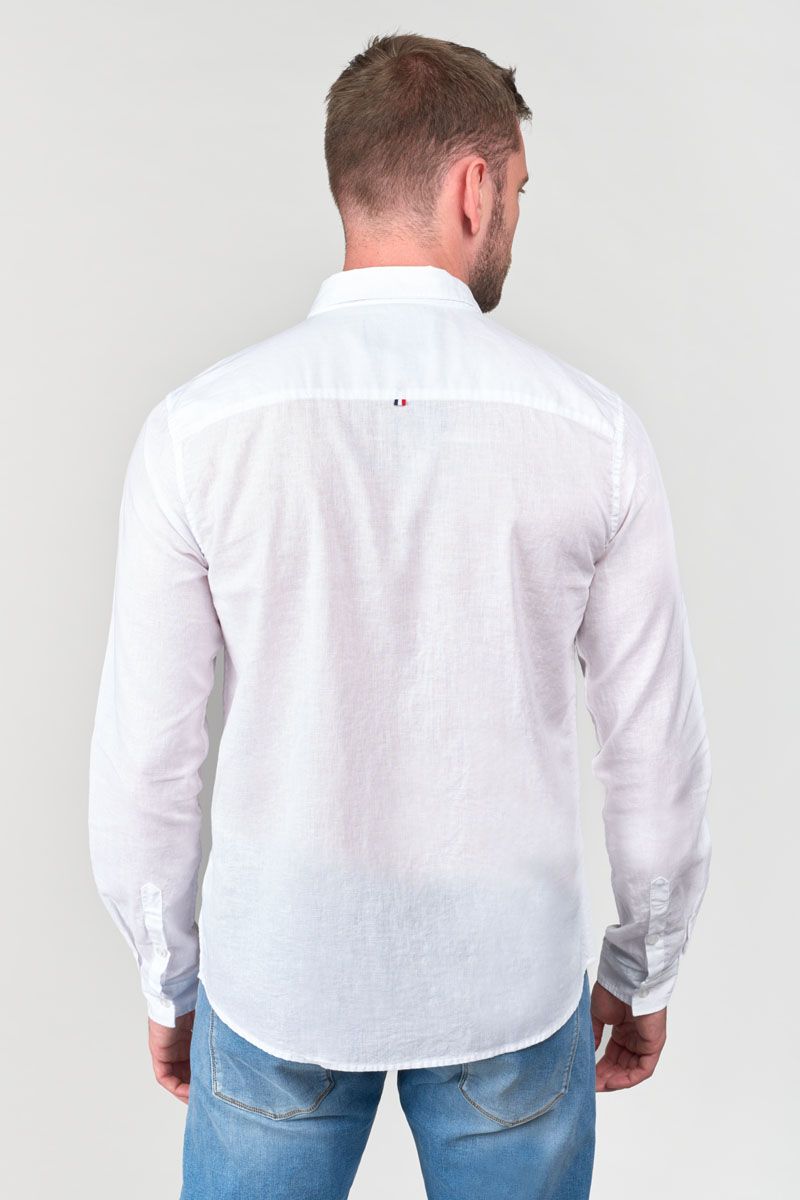 Camisa  blanca de mezcla de lino con efecto jaspeado.