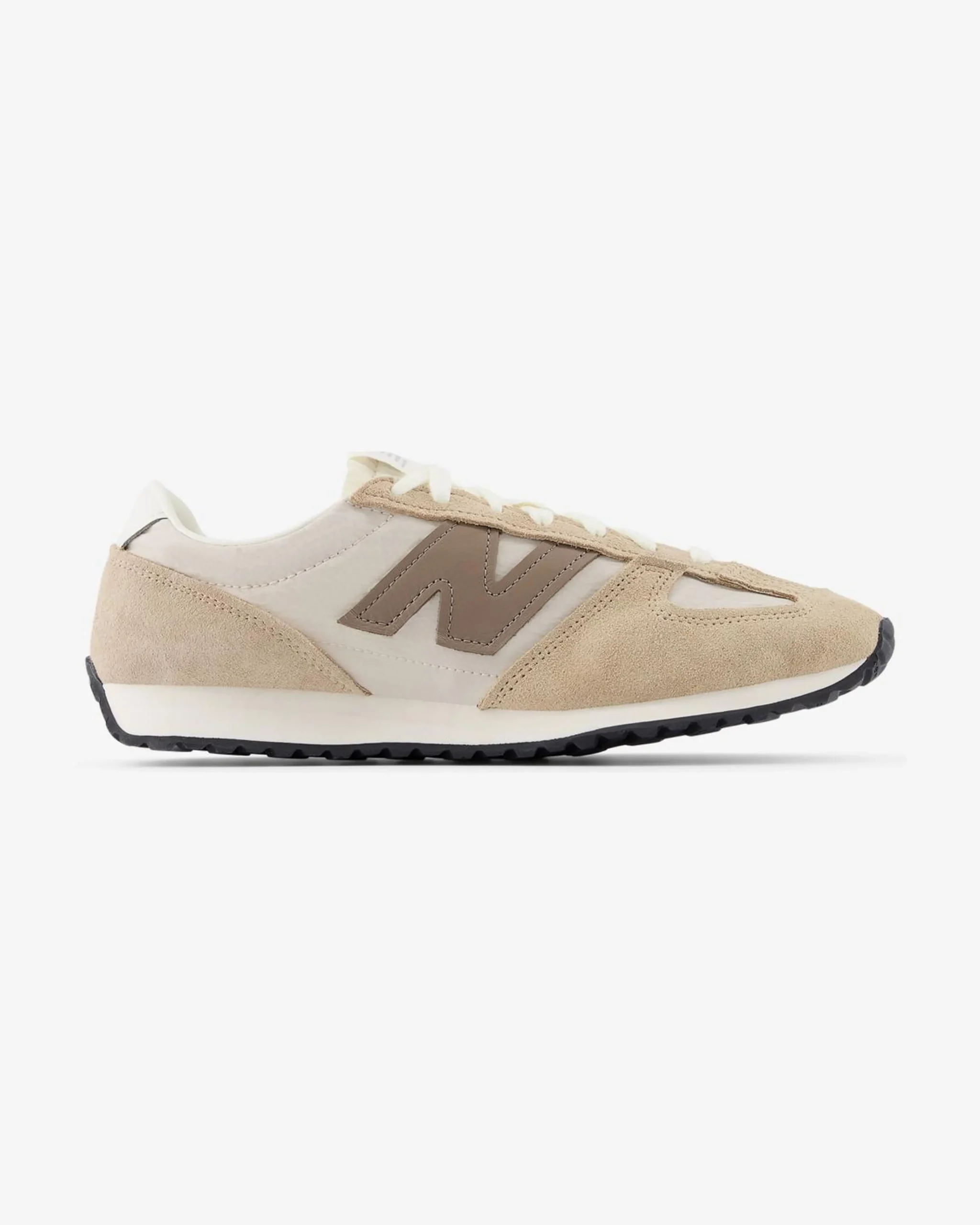 La 471 transforma la tradición de running de los 70 en un nuevo diseño de diario, con una reinterpretación de la gráfica distintiva de la época. Su estilizada entresuela de EVA de perfil bajo con forma de cuña y su suela de espiga ofrecen un punto de inicio familiar que permite otorgar protagonismo a los sofisticados materiales escogidos. El empeine de malla transpirable y las capas superiores de ante suave ofrecen un look desenfadado y desgastado, mientras que el diseño de la puntera es un toque visual único de New Balance que distingue a la 471 del resto.
