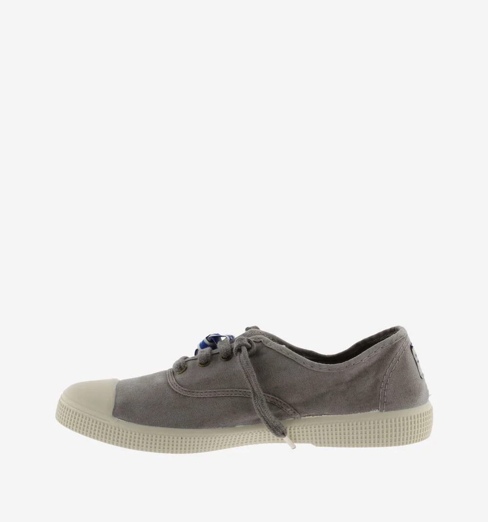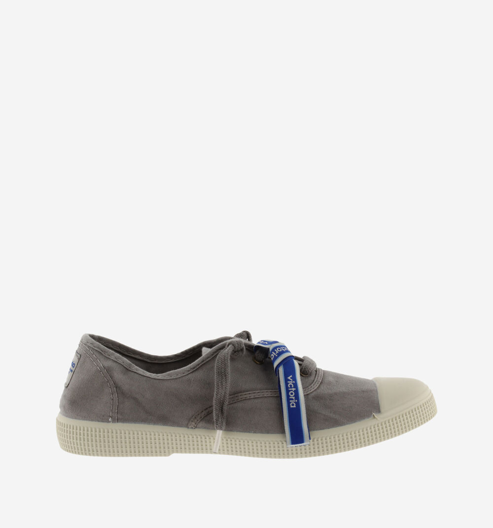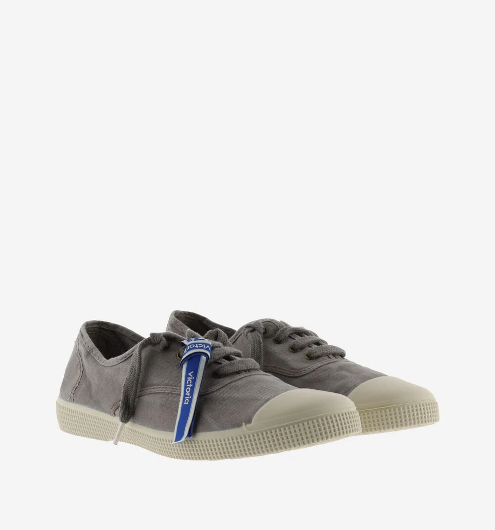 Estas zapatillas de lona para mujer y hombre están fabricadas en una combinación única de algodón reciclado DREC® (Dyeable Recycled Eco Cotton) y algodón ecológico cultivado, hilado y tejido en España. Se presentan con un ligero efecto envejecido. Incorporan cierre con cordones al tono e incluyen como accesorio una pulsera tipo festival con el logotipo de victoria. Cómoda suela de caucho vulcanizado con refuerzo en la puntera, para una mayor resistencia y durabilidad.