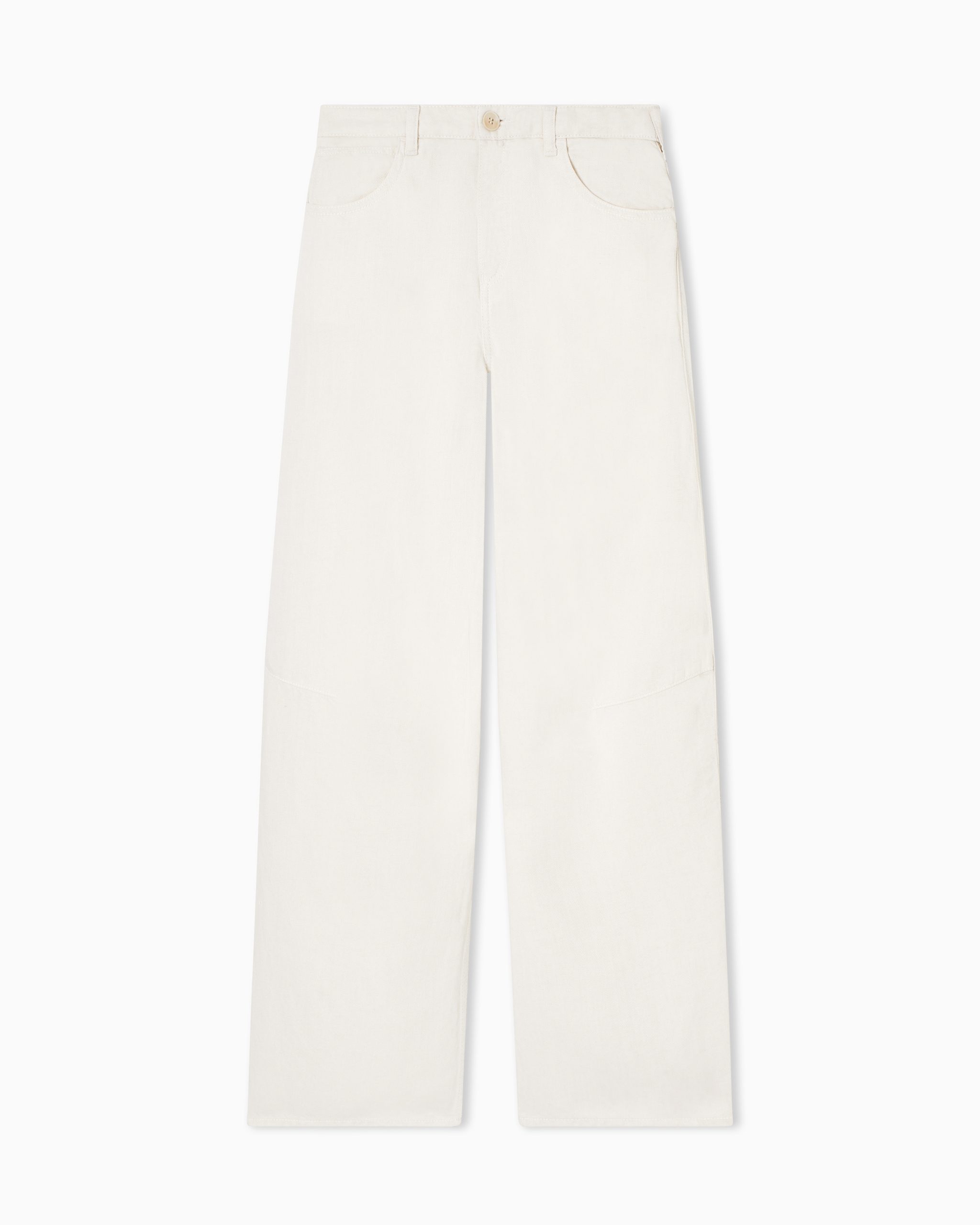 Pantalones modelo cinco bolsillos confeccionados en tejido fresco y ligero de mezcla de lino y lyocell teñido en prenda, un proceso que confiere al tejido una particular suavidad y un aspecto desgastado. El modelo presenta cintura medio alta y pernera de diseño globo. Corte relajado. La ligereza del tejido hace que estos pantalones sean ideales para el buen tiempo, ofreciendo comodidad y estilo sin concesiones.