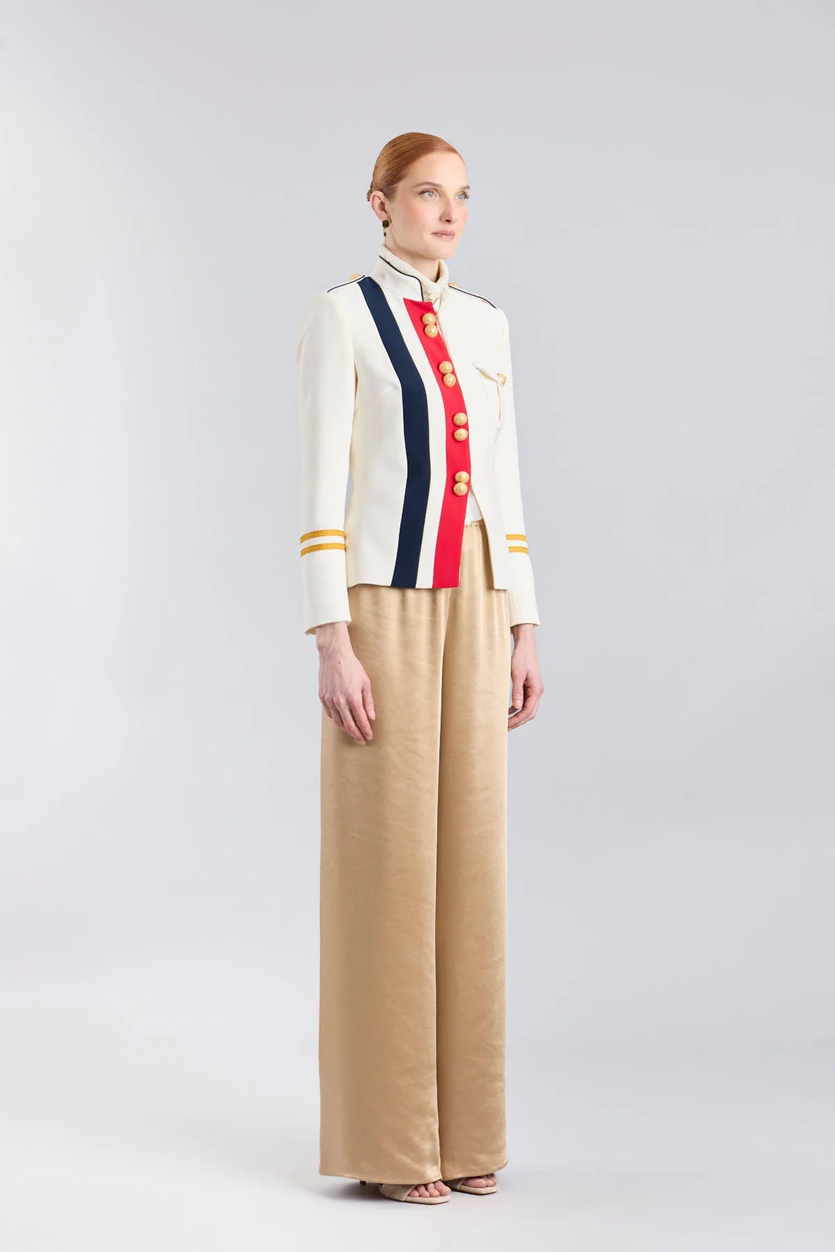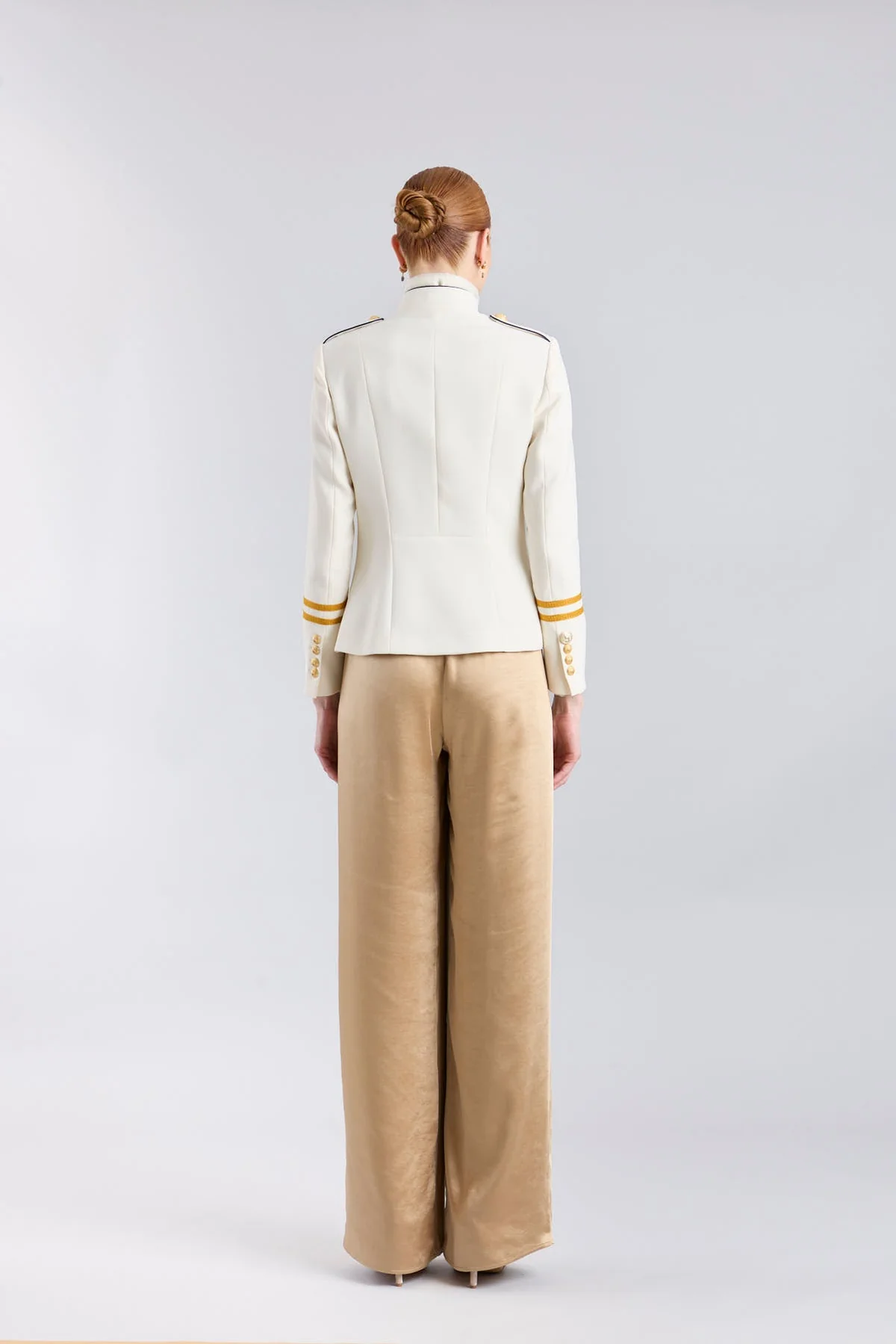 Detrás de la creación de este modelo se encuentra el trabajo minucioso de nuestros artesanos, quienes aseguran que el ajuste sea perfecto y que la pureza de la prenda se mantenga en cada remate. Al formar parte de nuestras ediciones limitadas, el modelo Claudia London garantiza una exclusividad real, alejada de la fabricación industrial masiva para centrarse en el valor de lo bien hecho. La presencia de sus botones metálicos de aleación con el logotipo de la firma refuerza el carácter de esta pieza de autor, aportando el peso necesario a su diseño de inspiración militar.