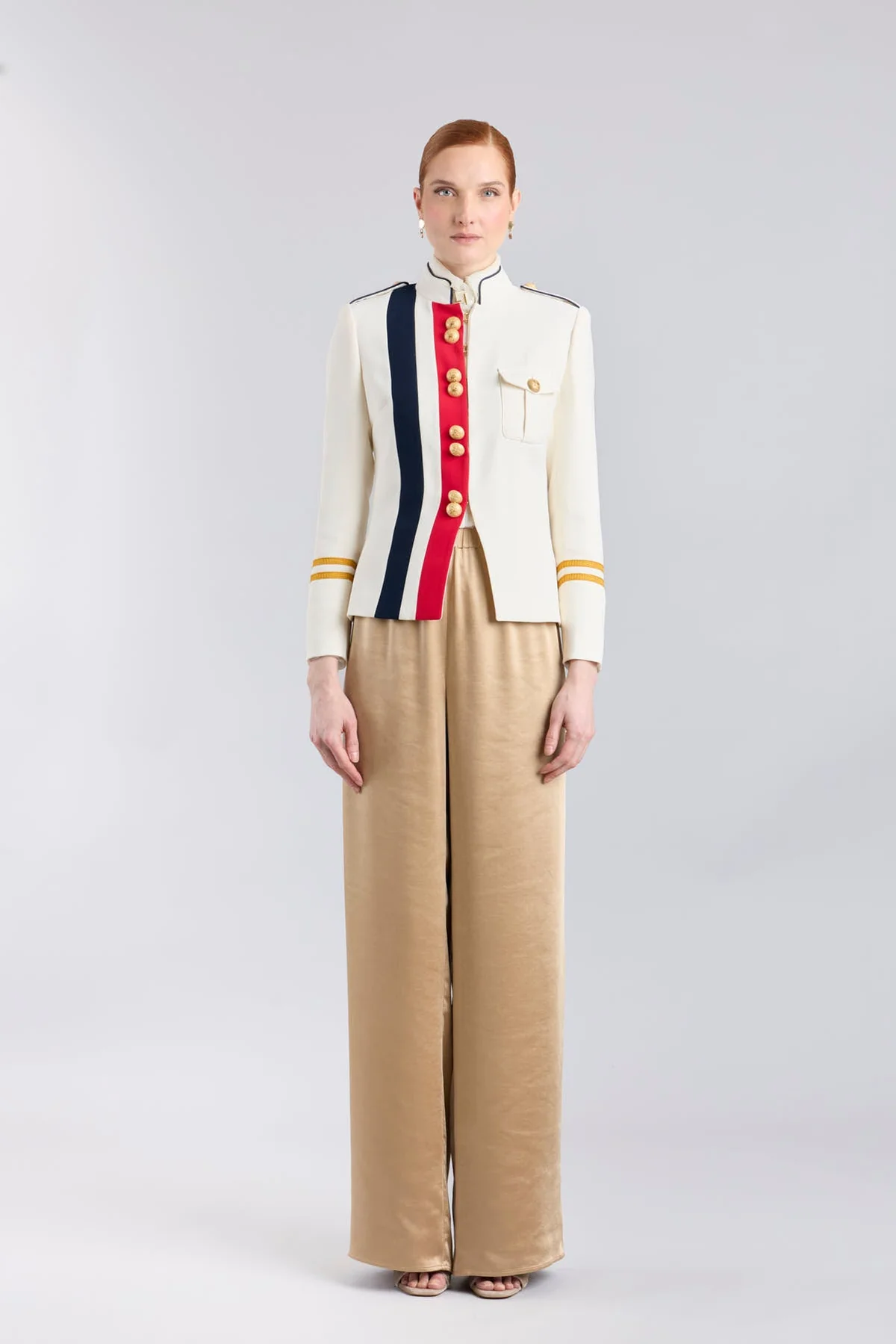 La chaqueta militar blanca mujer Claudia London es una pieza de referencia en nuestra sastrería por su rigor estructural y su fuerte identidad técnica. Confeccionada en un tejido de caída noble y un tono blanco rotundo, este diseño adapta los códigos de mando a una silueta femenina y precisa. Su arquitectura se define por una austeridad elegante donde el corte es el verdadero protagonista, convirtiendo esta prenda en una declaración de estilo para cualquier armario exigente.