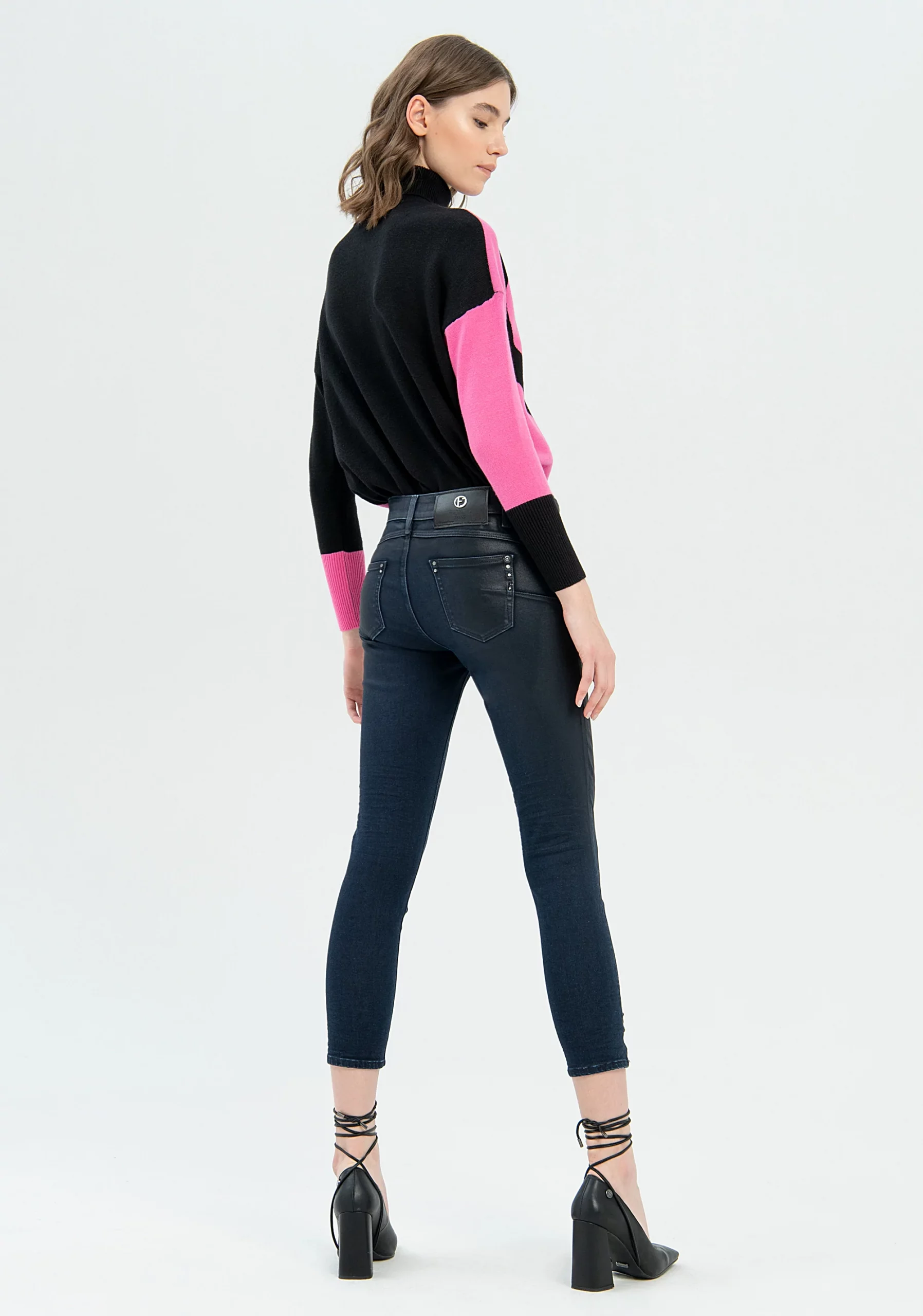 Jeans skinny fit cropped confeccionados en denim con efecto coat. Cintura estándar, 5 bolsillos y pierna inferior ajustada con aberturas.