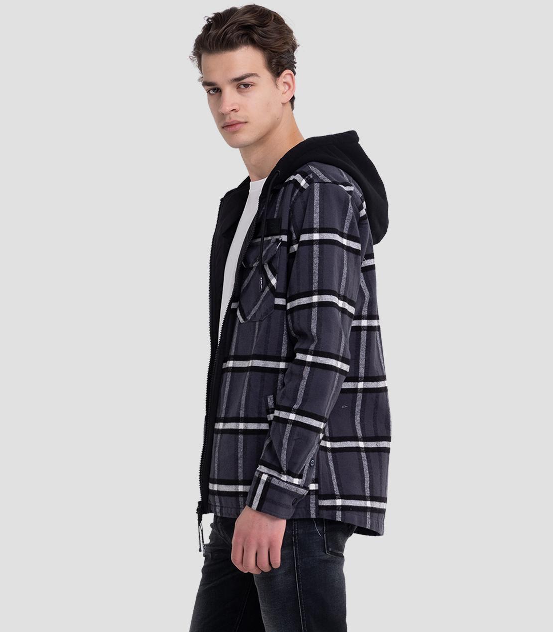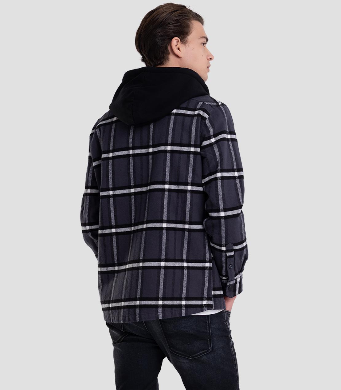 Camisa de camuflaje confeccionada en tejido de peso medio de mezcla de algodón, viscosa y lana, muy suave y cálido al tacto. El modelo de manga larga y corte regular se caracteriza por el ligero acolchado que la hace especialmente adecuada para el invierno. La prenda, con reminiscencias del mundo militar, se completa con el bolsillo interno con cremallera para guardar el teléfono. 100% Algodón