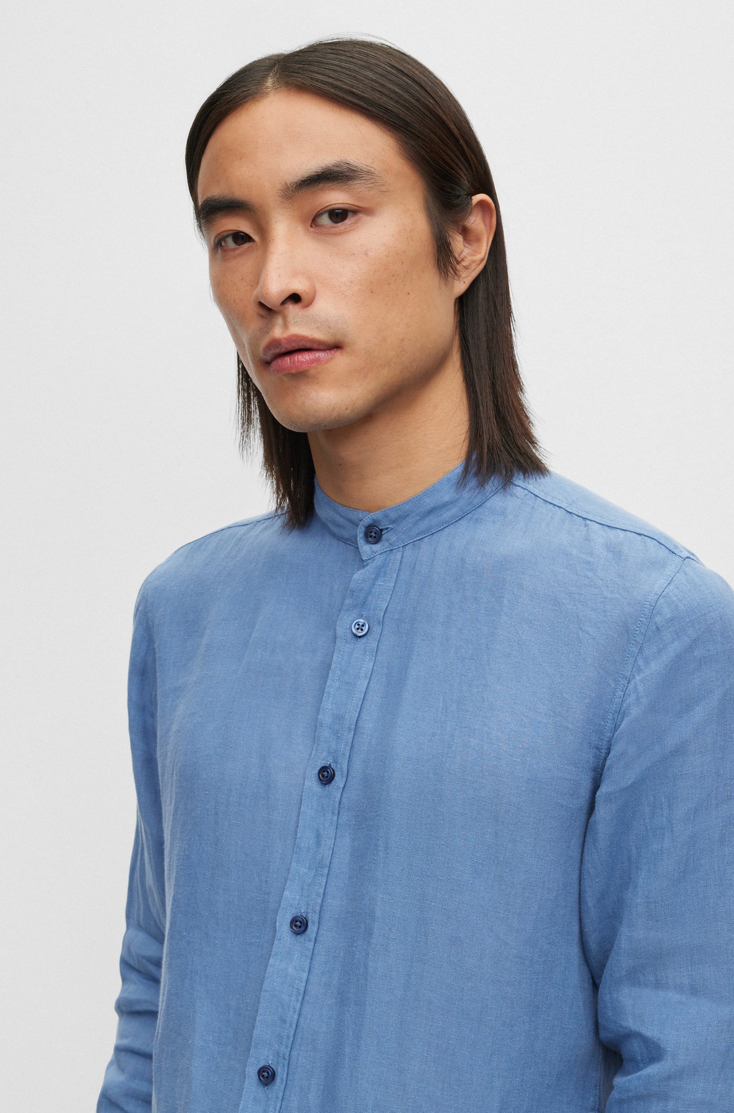 Camisa regular fit BOSS Hombre con detalles característicos. En nuestros productos RESPONSIBLE siempre utilizamos como mínimo un 60 % de materias primas más sostenibles. Esta prenda está confeccionada en lino. El lino es una materia prima natural. Los procesos de cultivo y extracción se consideran más sostenibles, ya que se necesitan menos pesticidas y abonos que en el cultivo de otras materias primas.