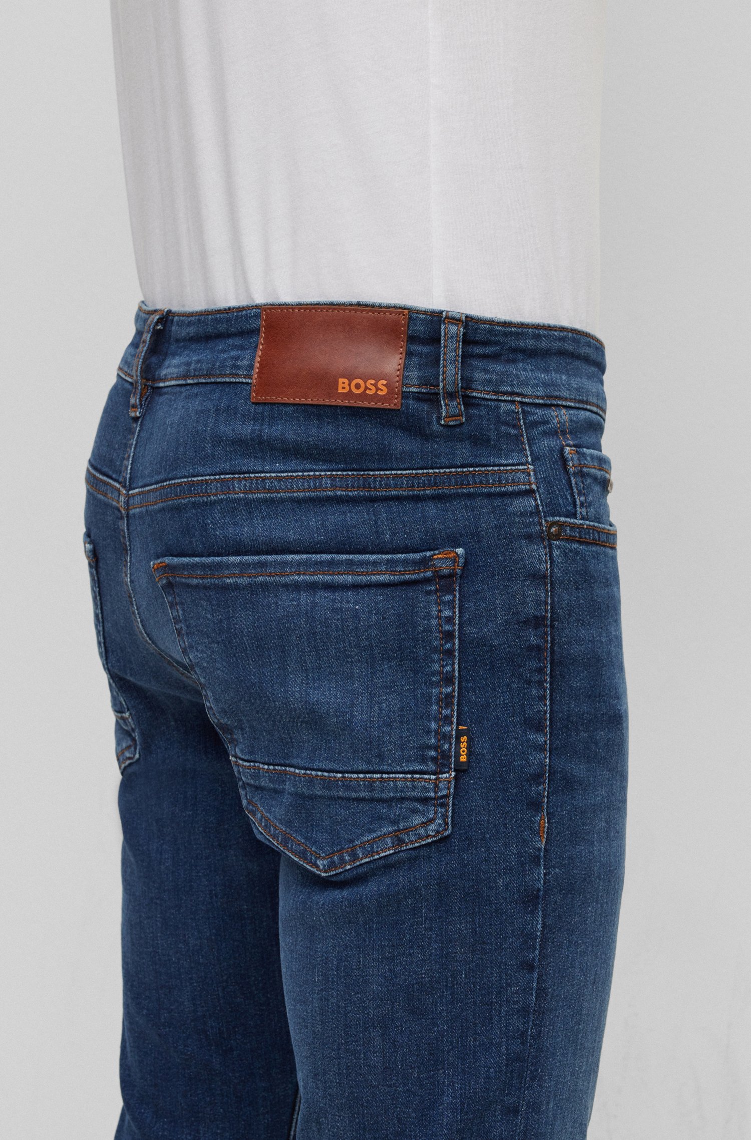 Vaqueros de la marca de tiro medio slim fit BOSS Hombre en tejido denim superelástico azul.