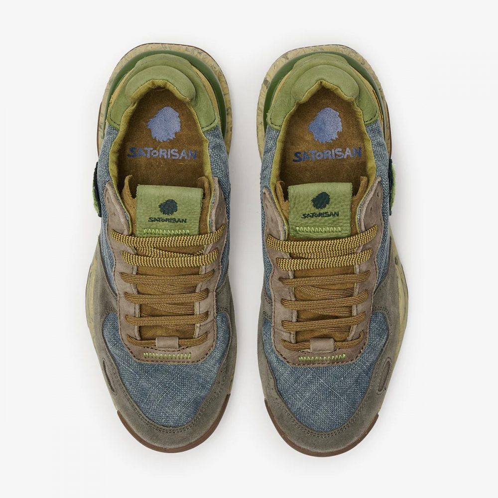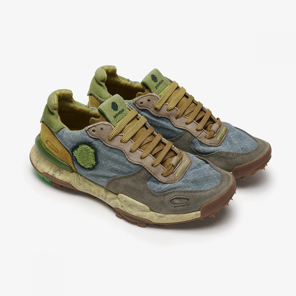 Chacrona, la creación más consciente de Satorisan, llamada como la hoja amazónica utilizada por las tribus indígenas para conectar cuerpo y alma. Es la interpretación de sneaker de hombre de ”cross training” de los años 80, súper cómoda y duradera.