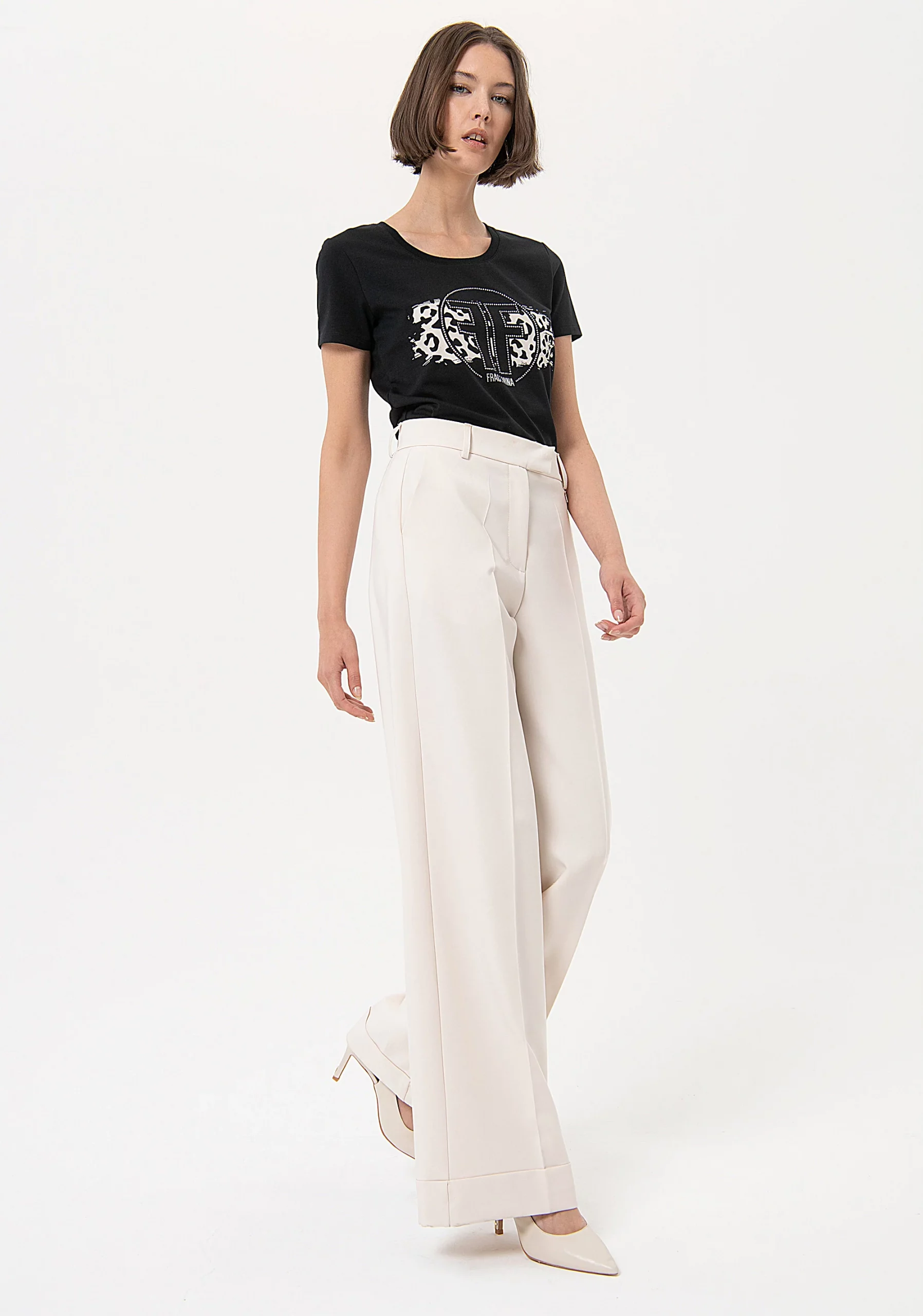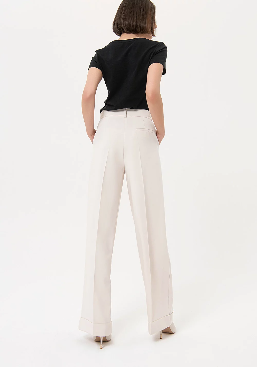 Pantalón de vuelo palazzo confeccionado en tejido técnico. Talle alto, bolsillos franceses y pernera ancha