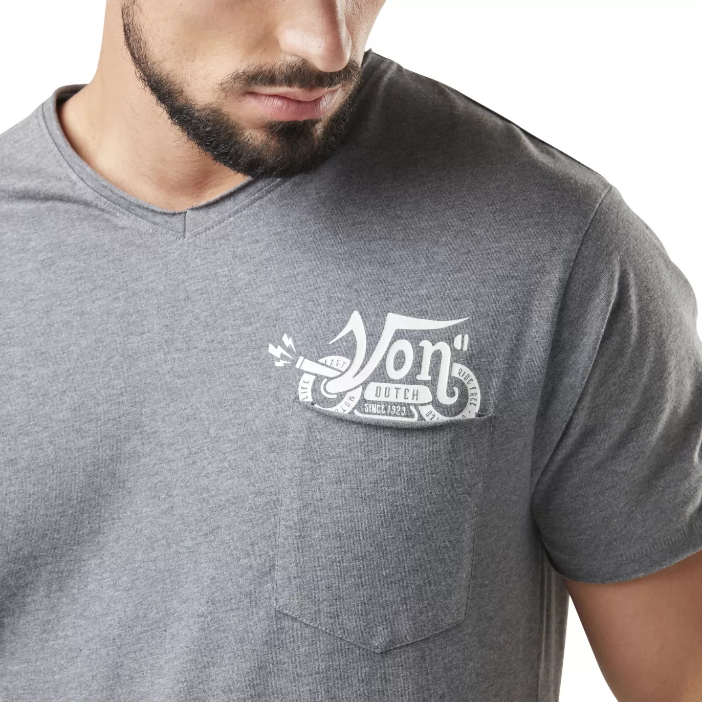 Camiseta de hombre con cuello de pico y estampado debajo del bolsillo Vond. 50% algodón y 50% Poliester.