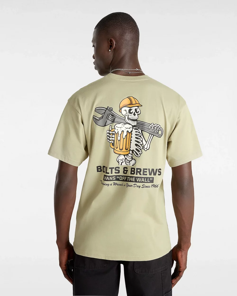 La camiseta Wrenched, confeccionada en algodón transpirable, presenta un diseño clásico con gráficos serigrafiados, el logotipo de Vans® en la parte delantera y un gráfico complementario en la espalda.