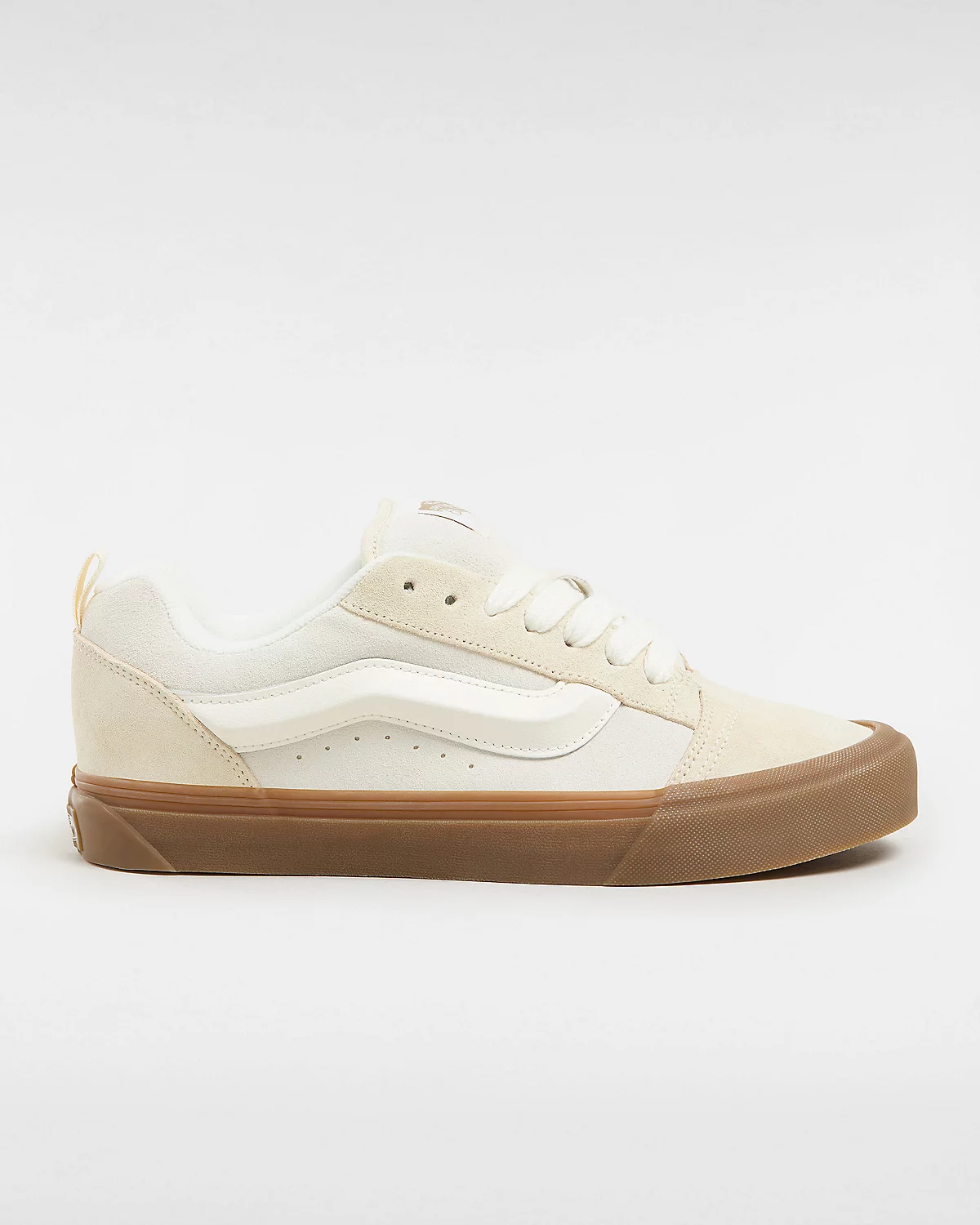 Las Knu Skool de ante son una interpretación moderna de un modelo clásico de los 90, caracterizado por su lengüeta acolchada y su banda lateral moldeada en 3D, con cordones gruesos y de gran tamaño. Con su perfil en la cara y detalles de estilo dramático, el Knu Skool juega con el Old Skool original al tiempo que combina un icono del pasado con las tendencias actuales.