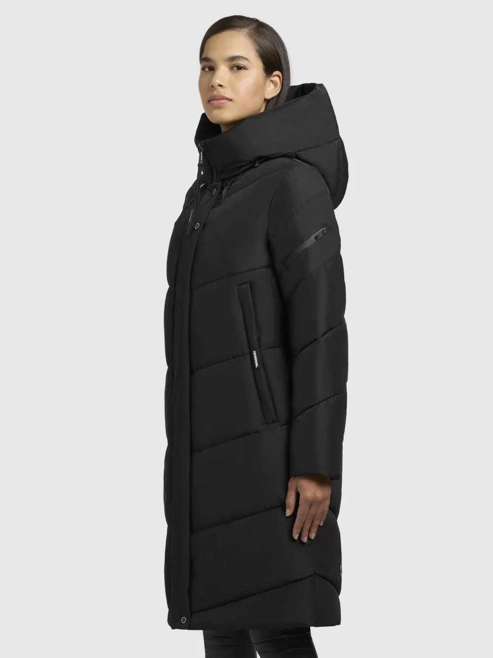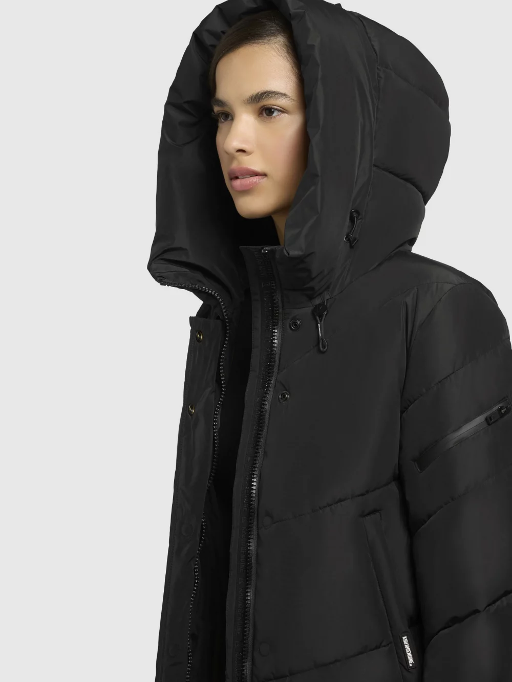 Una capucha de cierre alto con cordón elástico, un acolchado cálido, puños elásticos en el forro de las mangas y bolsillos con forro polar protegen el abrigo khujo JANGE del frío invierno. Gracias a la cremallera bidireccional acortada, este abrigo acolchado hasta la rodilla garantiza la libertad de movimiento. Tus pertenencias también puedes guardarlas en los bolsillos laterales con cremallera, en un bolsillo interior o en un bolsillo repelente al agua en la manga de esta chaqueta de invierno.
